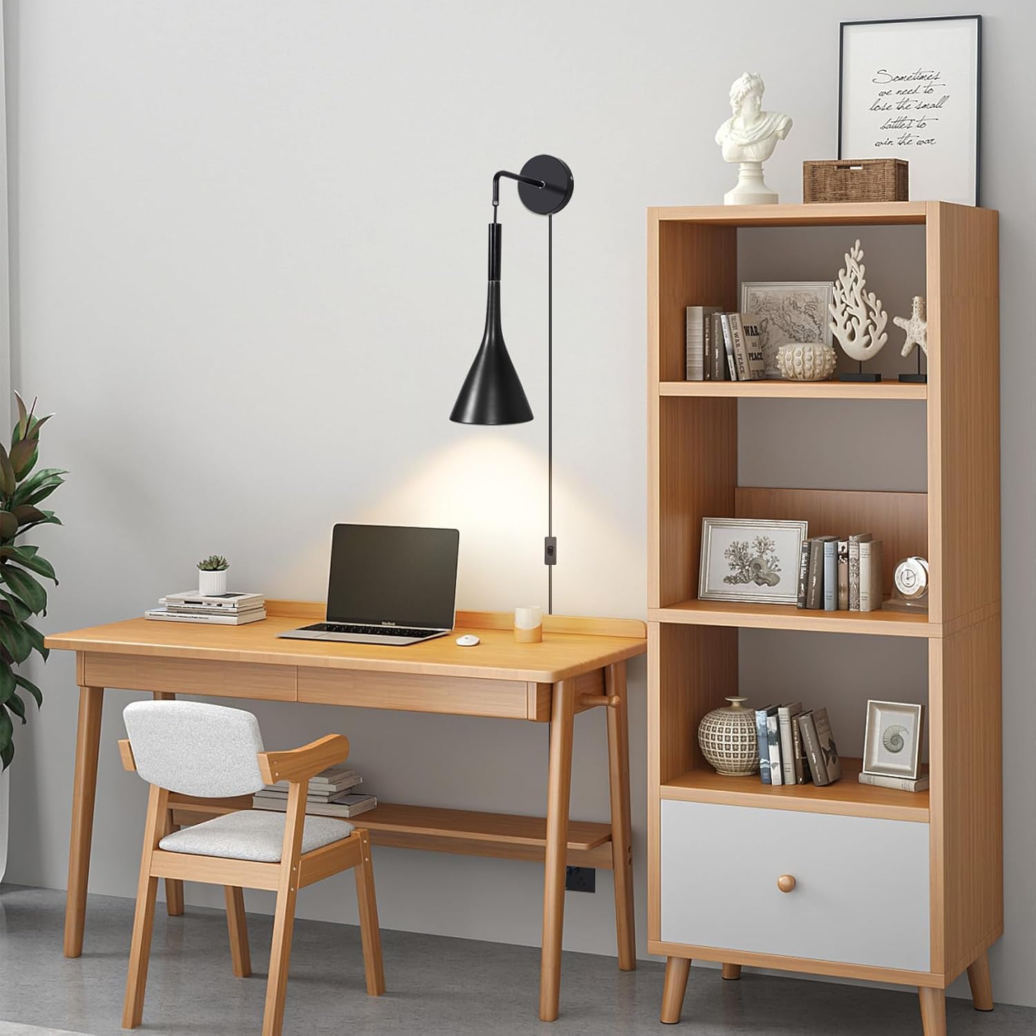 Kawell 12W Indoor LED Wall Light Bar Rotatable Plug in LED Wall Sconce with Switch Modern LED Wall Lamp Black for Bedroom Living Room Hallway Study, Cold White