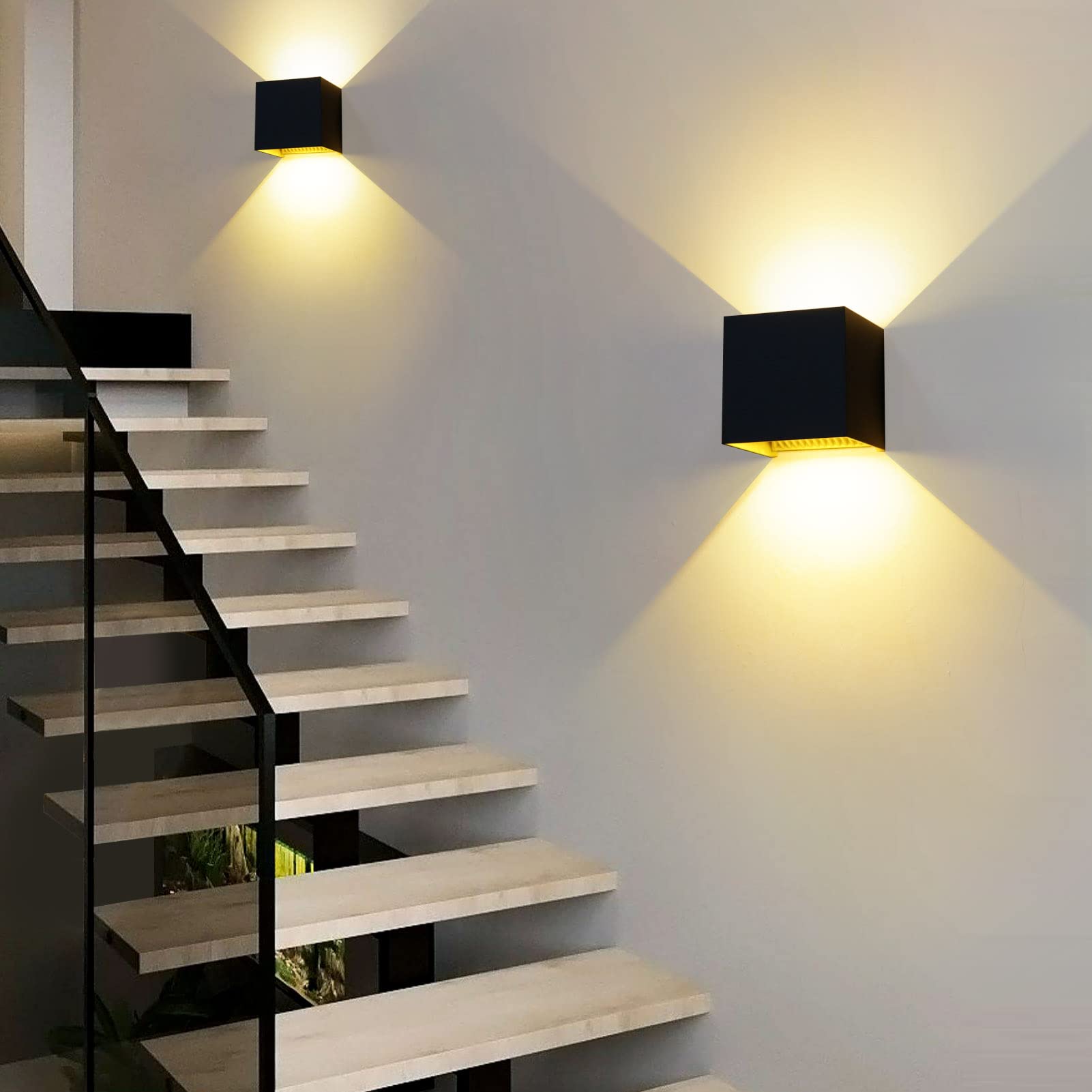 Kawell 10W Modern LED Wall Sconce Acrylic Indoor LED Wall Light Hardwired Black LED Wall Mount Wall Lamp Square for Bedroom Bedside Living Room Stair, 6000K