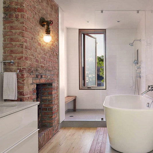 Kawell Vintage Wall Light Fixtures Industrial Retro Wall Sconce Light Creative Water Pipe Wall Lamp Iron Art Single E26 60W Max for Bedroom Kitchen Restaurant Loft Cafe Bar Hallway, Red