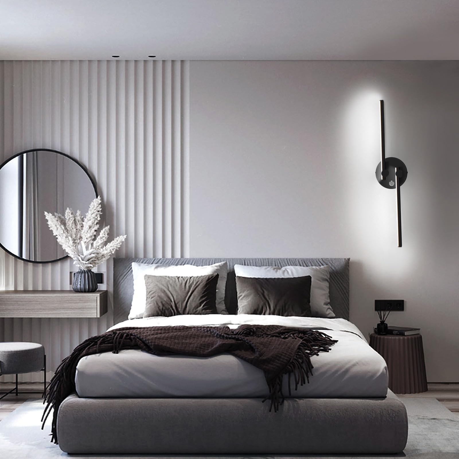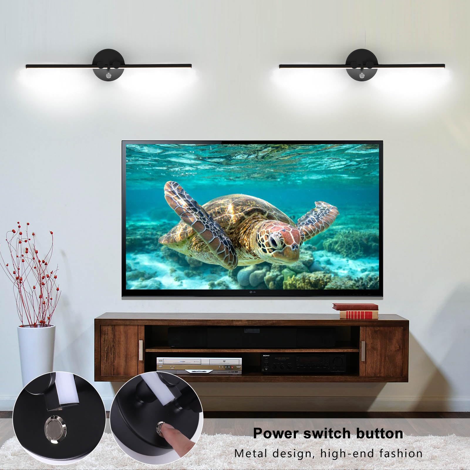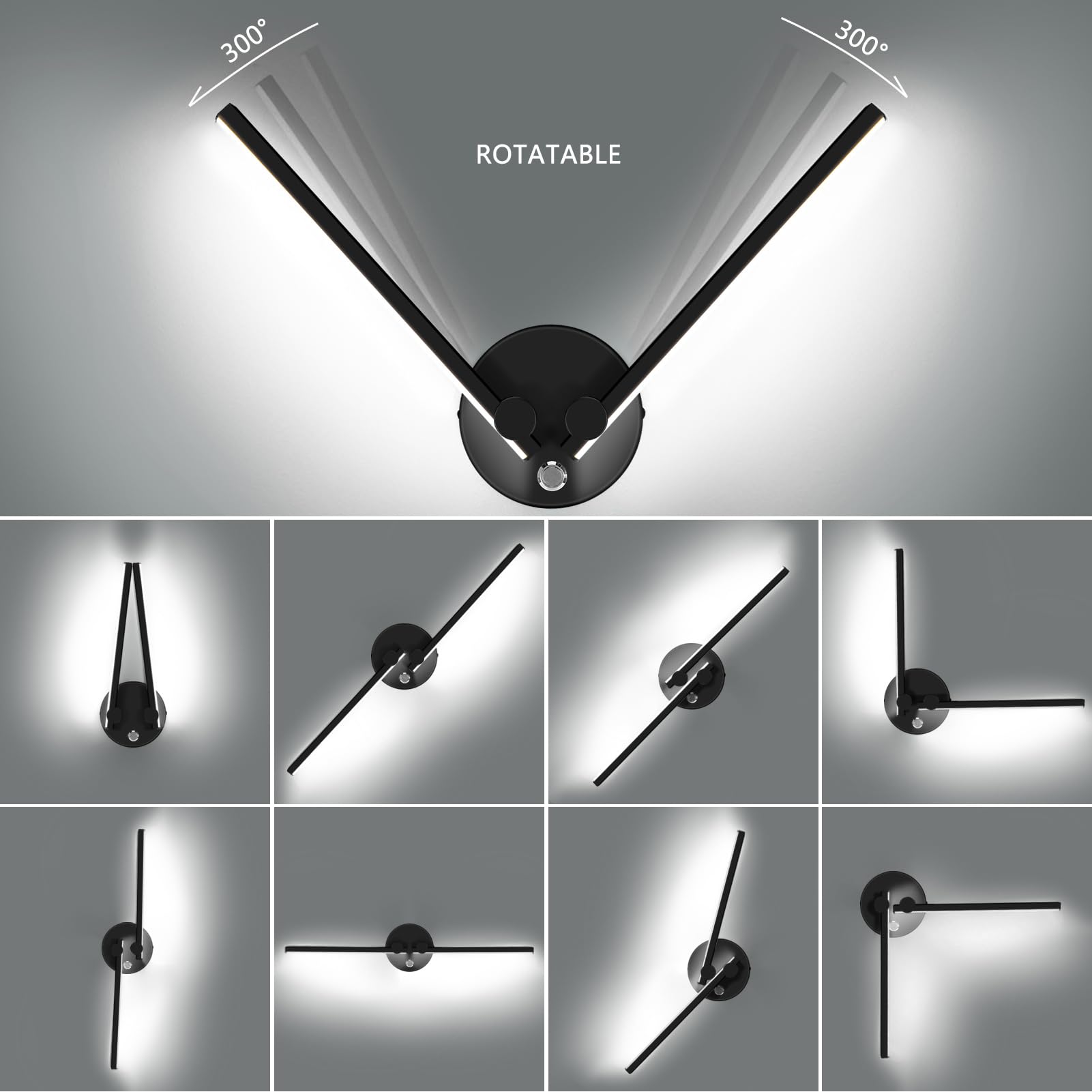 Kawell 10W Modern LED Wall Light with Switch Indoor LED Wall Sconce Hardwired LED Wall Lamp Bar with 300° Rotatable Lamp Arms for Living Room Background Wall Bedroom Hallway Aisle, Black 6000K