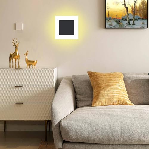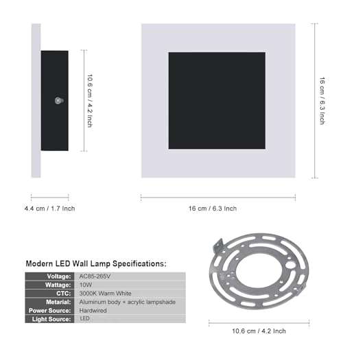 - Creative Minimalist Structure:6.3 inch square acrylic plate with 3.9 inch black aluminum sheet, the overall thickness is about 0.4 inch. Adopting sandblasted treatment and brushed process, finely manufactured. This minimalist wall sconce radiates an overall light effect of 10W, which is warm and bright and makes your room shine