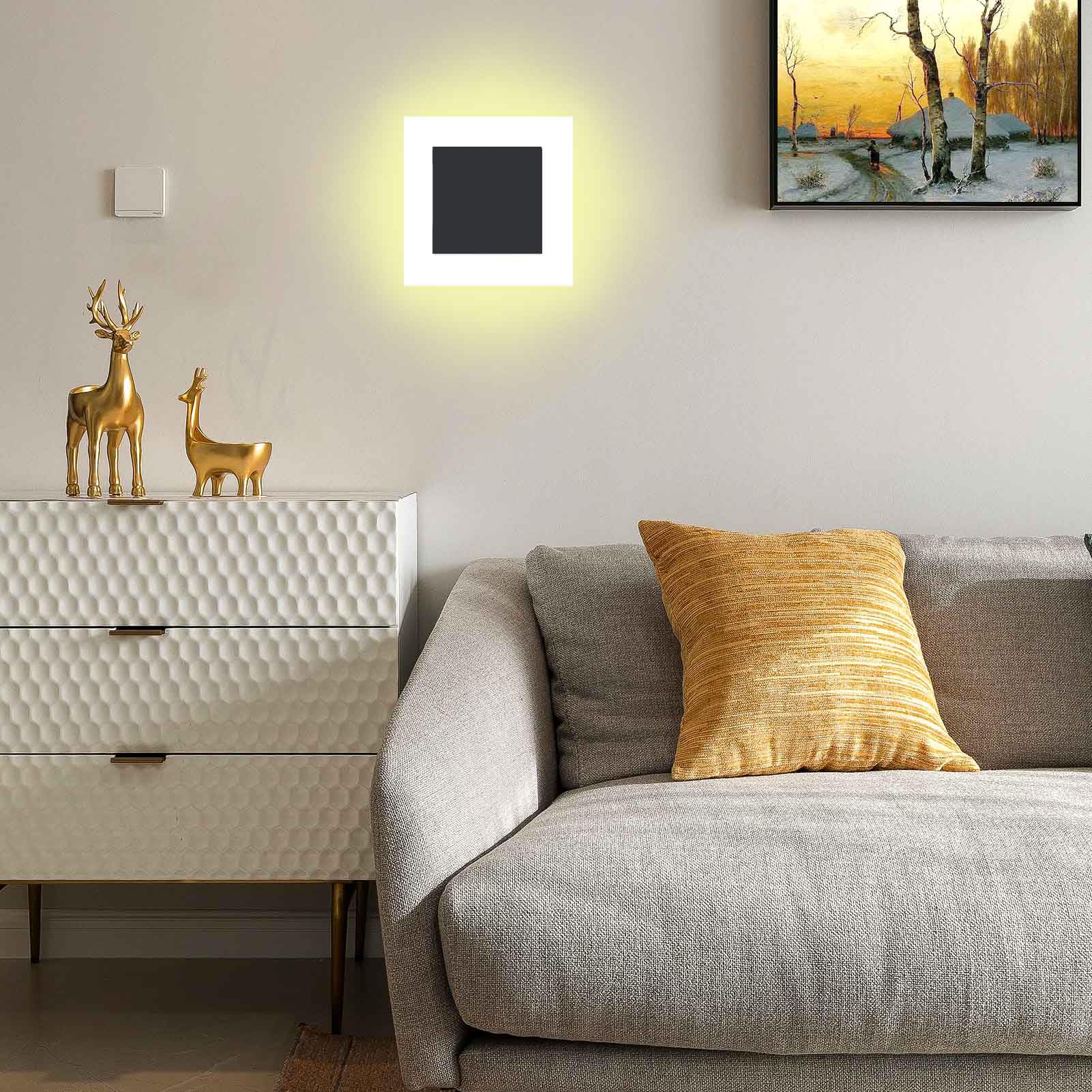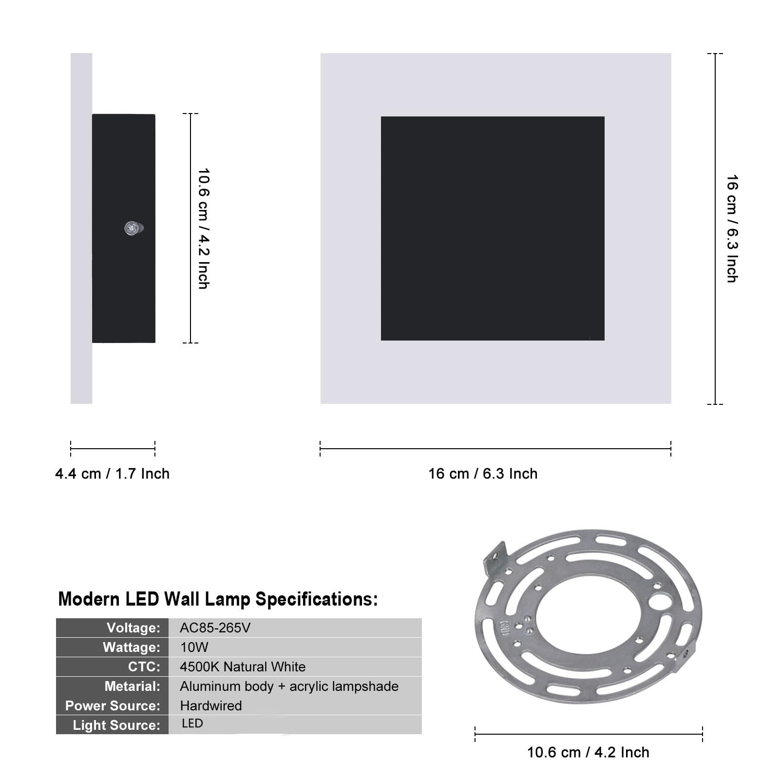 - Creative Minimalist Structure:6.3 inch square acrylic plate with 3.9 inch black aluminum sheet, the overall thickness is about 0.4 inch. Adopting sandblasted treatment and brushed process, finely manufactured. This minimalist wall sconce radiates an overall light effect of 10W, which is warm and bright and makes your room shine