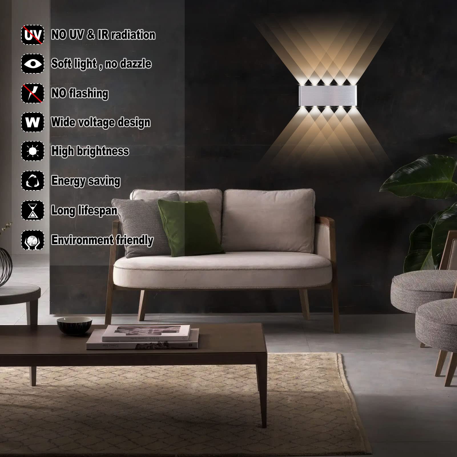 - Minimalistic LED Wall Light: Unique bar type design; 10 evenly spaced LED lamp beads can make the wall light produce a superposition light effect, can create a warm and comfortable atmosphere