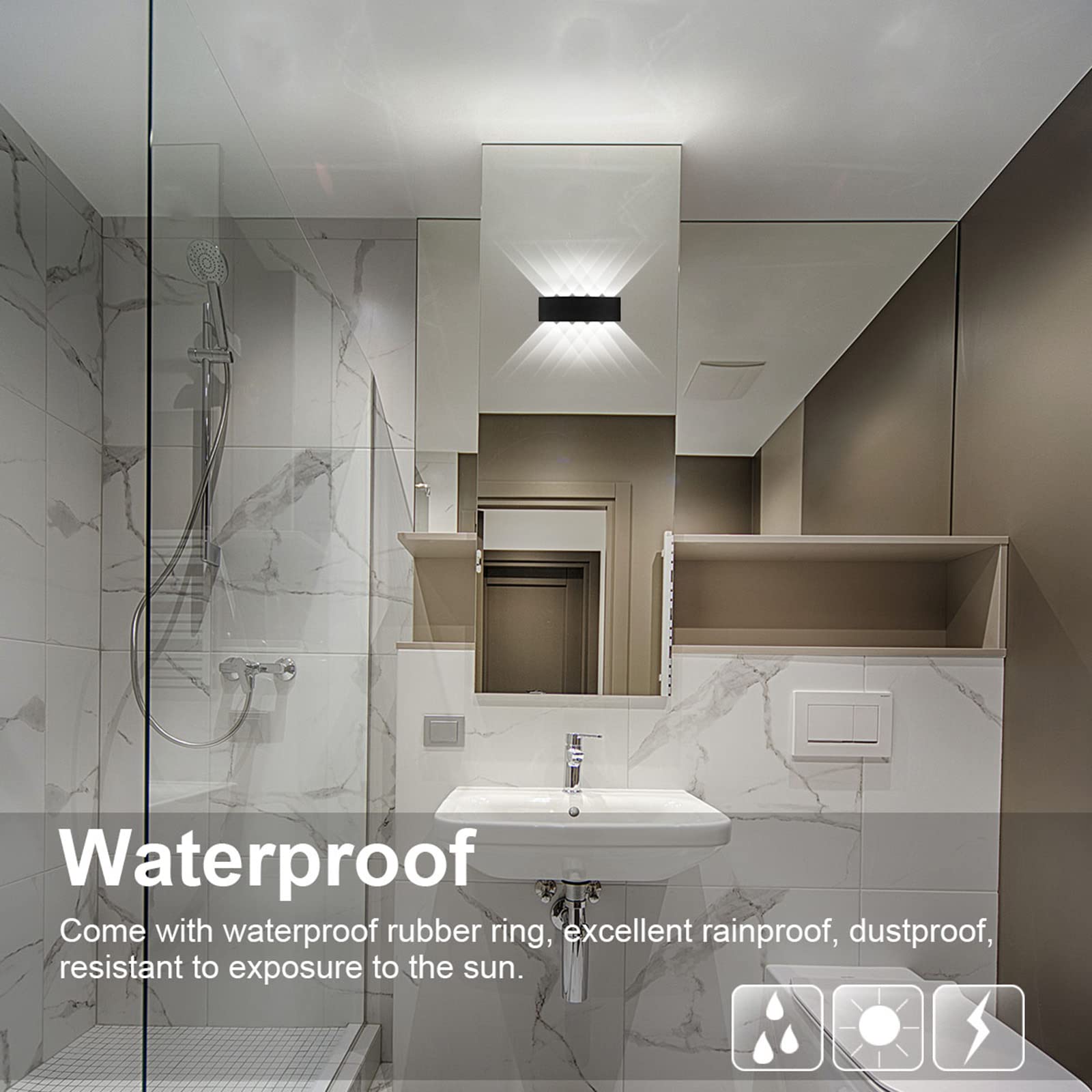 Kawell 10W Waterproof Modern Wall Sconces LED Wall Light Up Down Aluminum Wall Lamp LED Indoor Outdoor for Bedroom Living Room Bathroom Porch Stairs Hotels Garden Pathway, Black 6000K