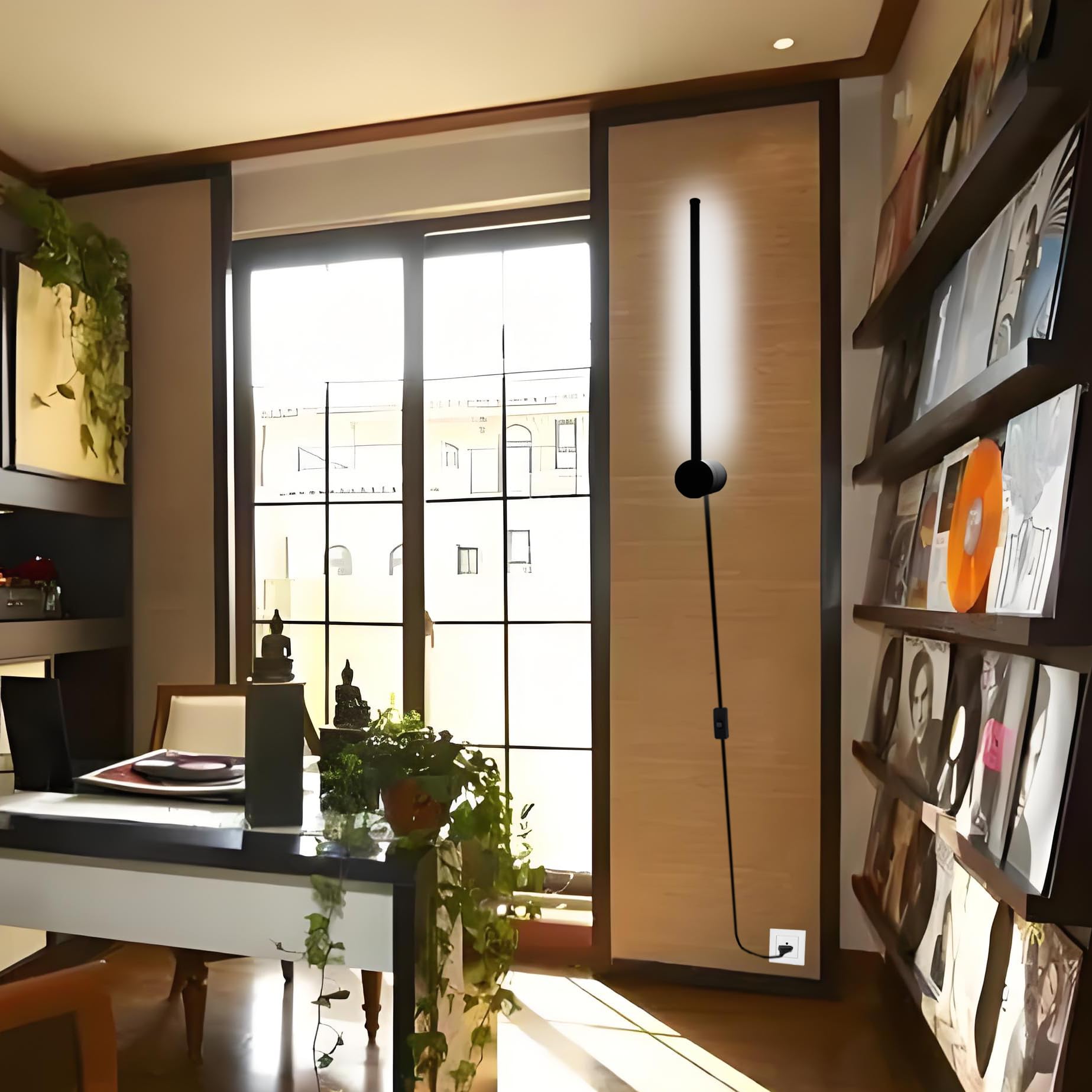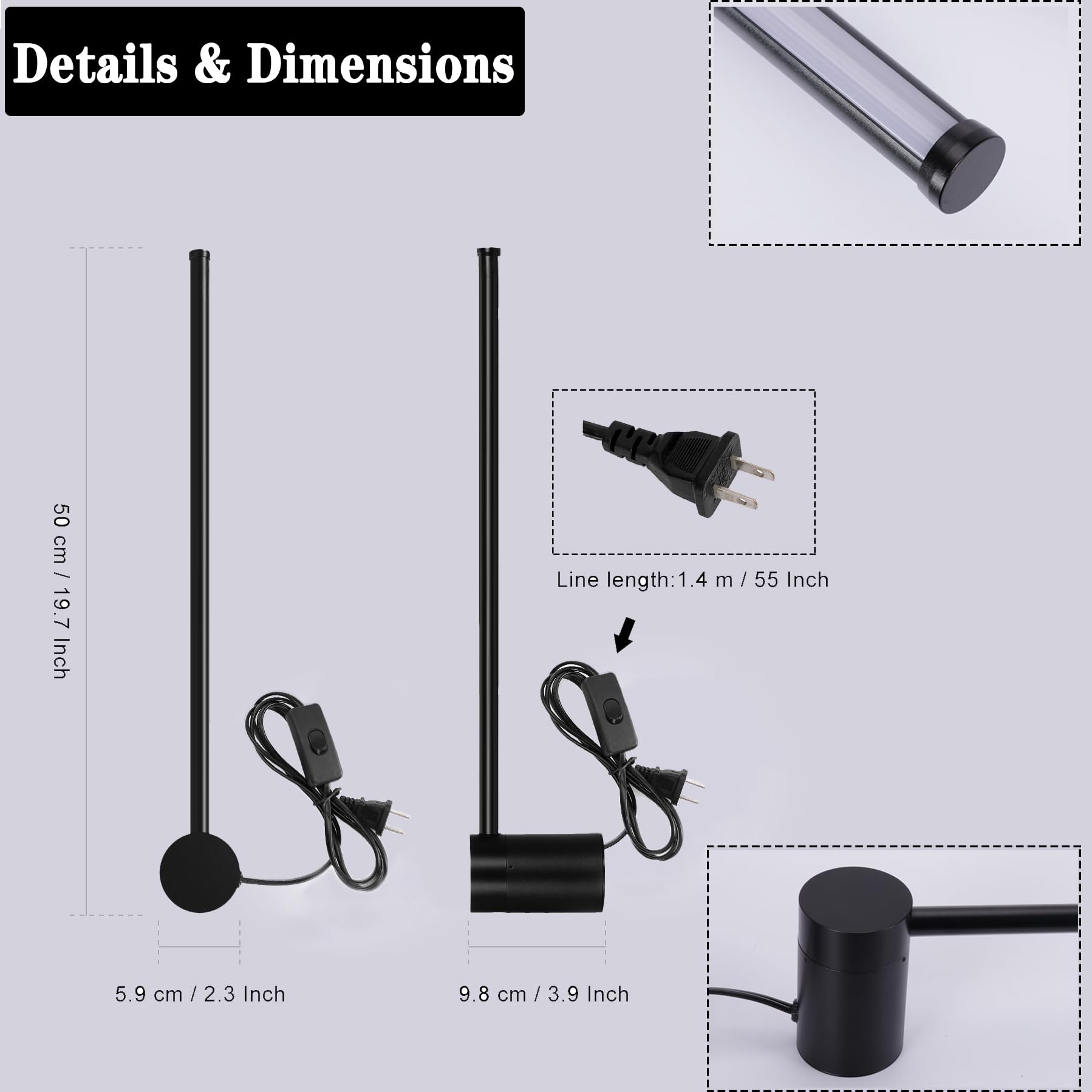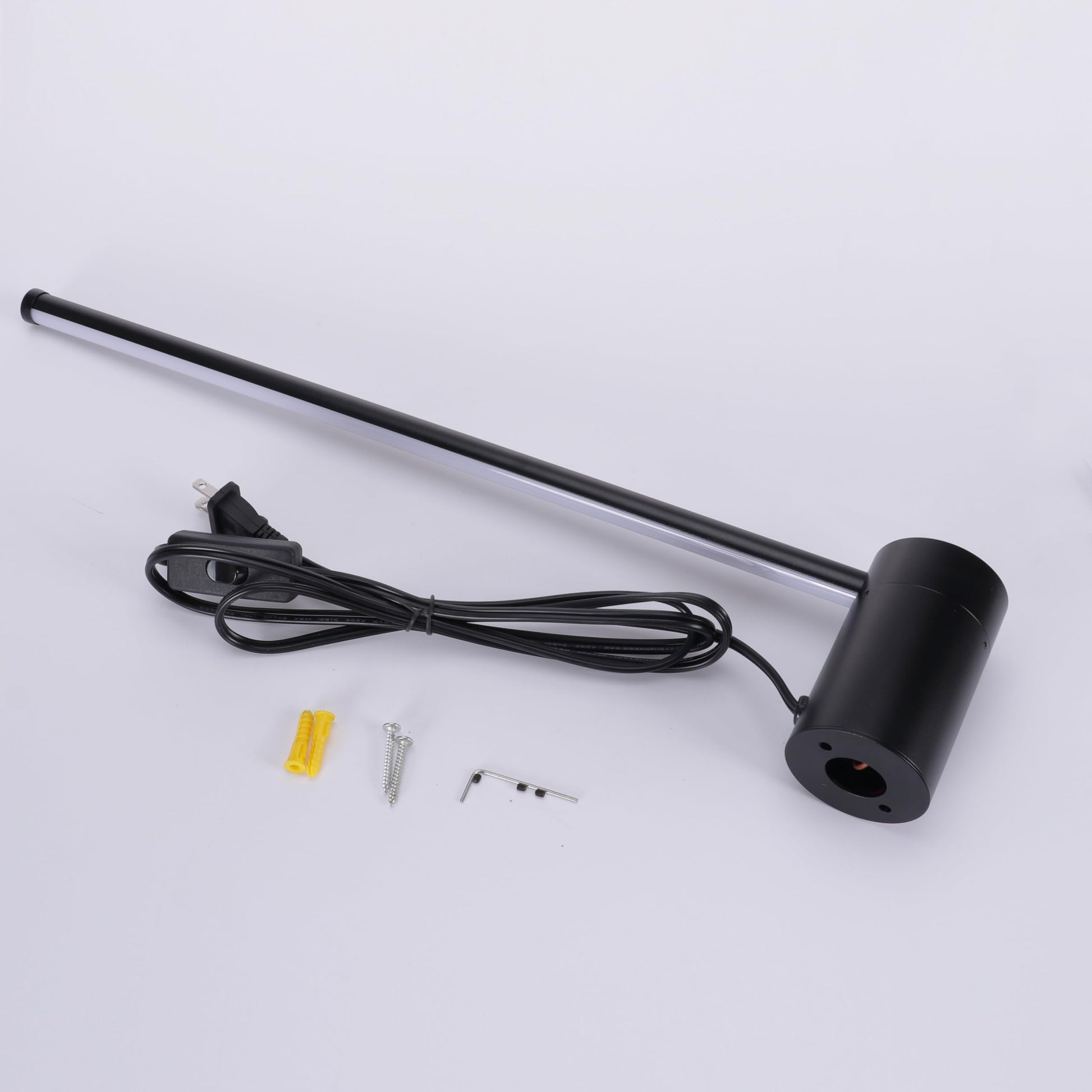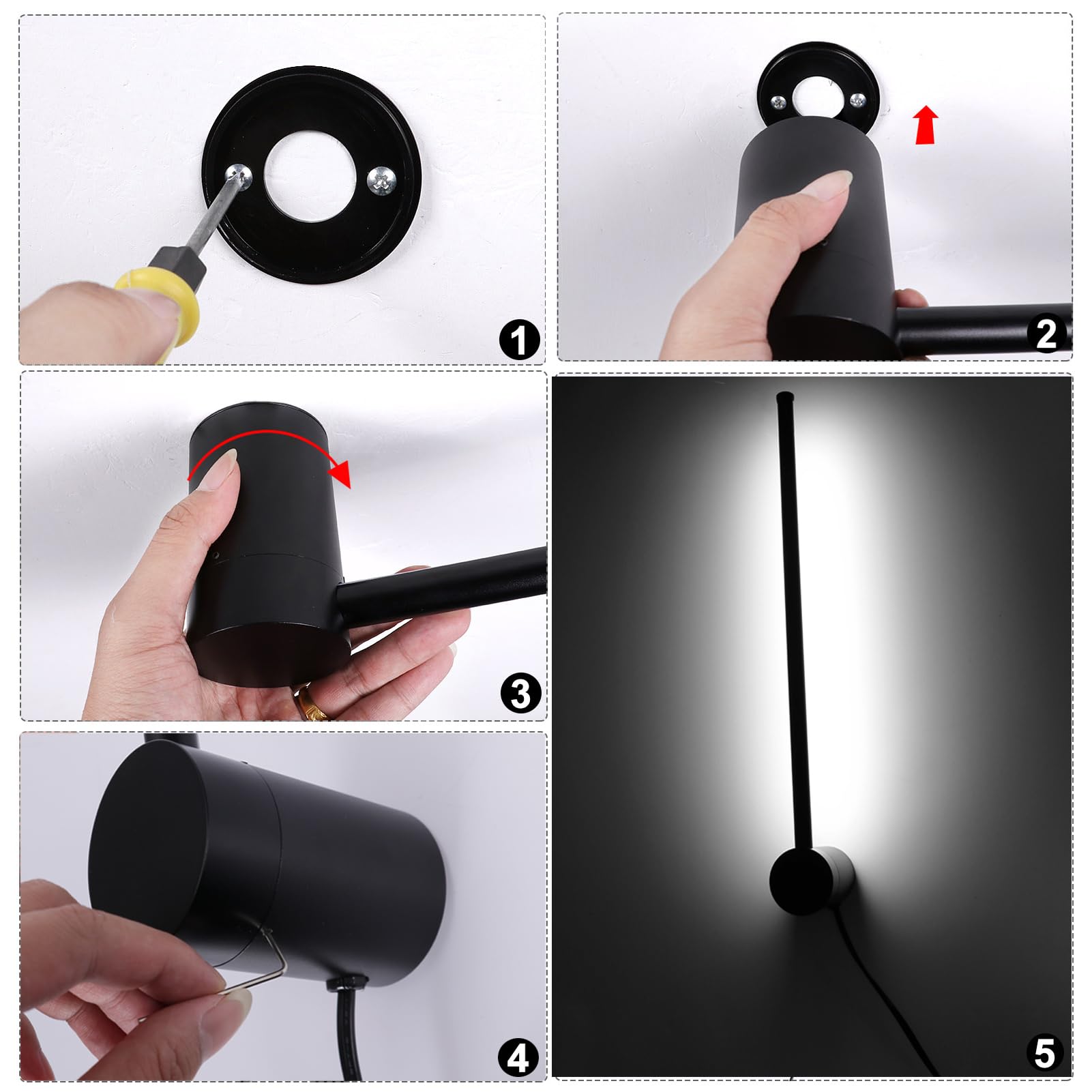 Kawell 12W Indoor LED Wall Light Bar Rotatable Plug in LED Wall Sconce with Switch Modern LED Wall Lamp Black for Bedroom Living Room Hallway Study, Cold White