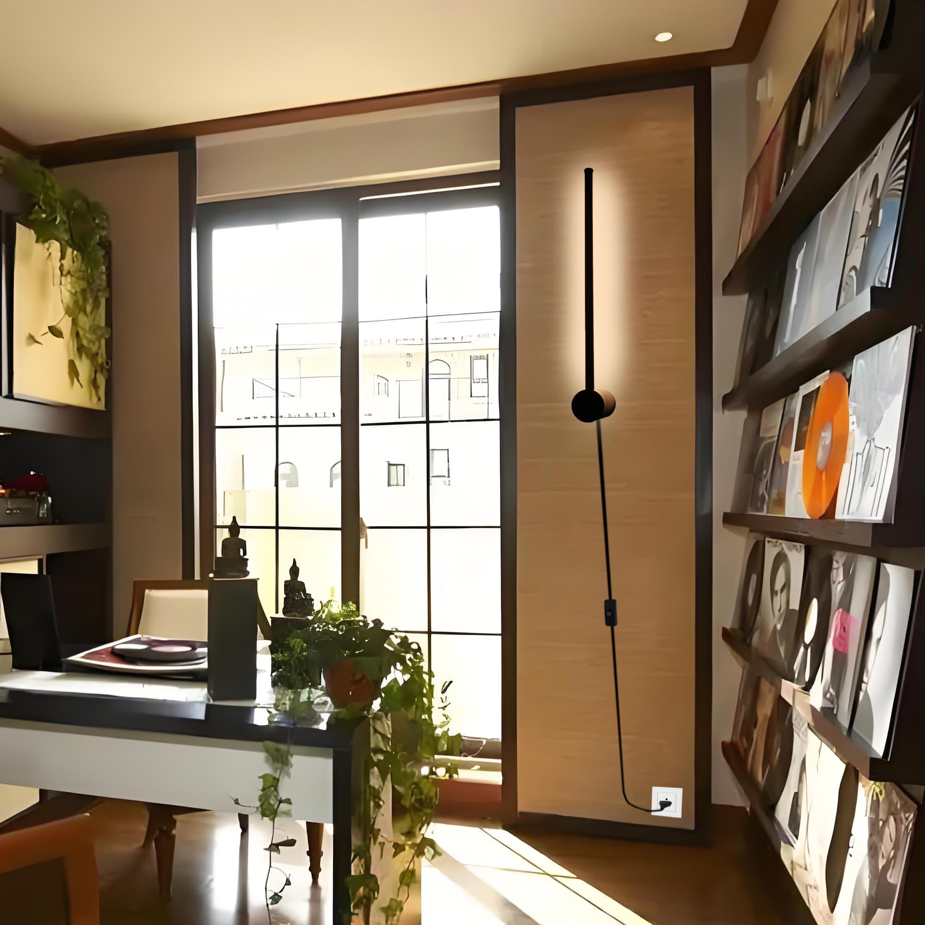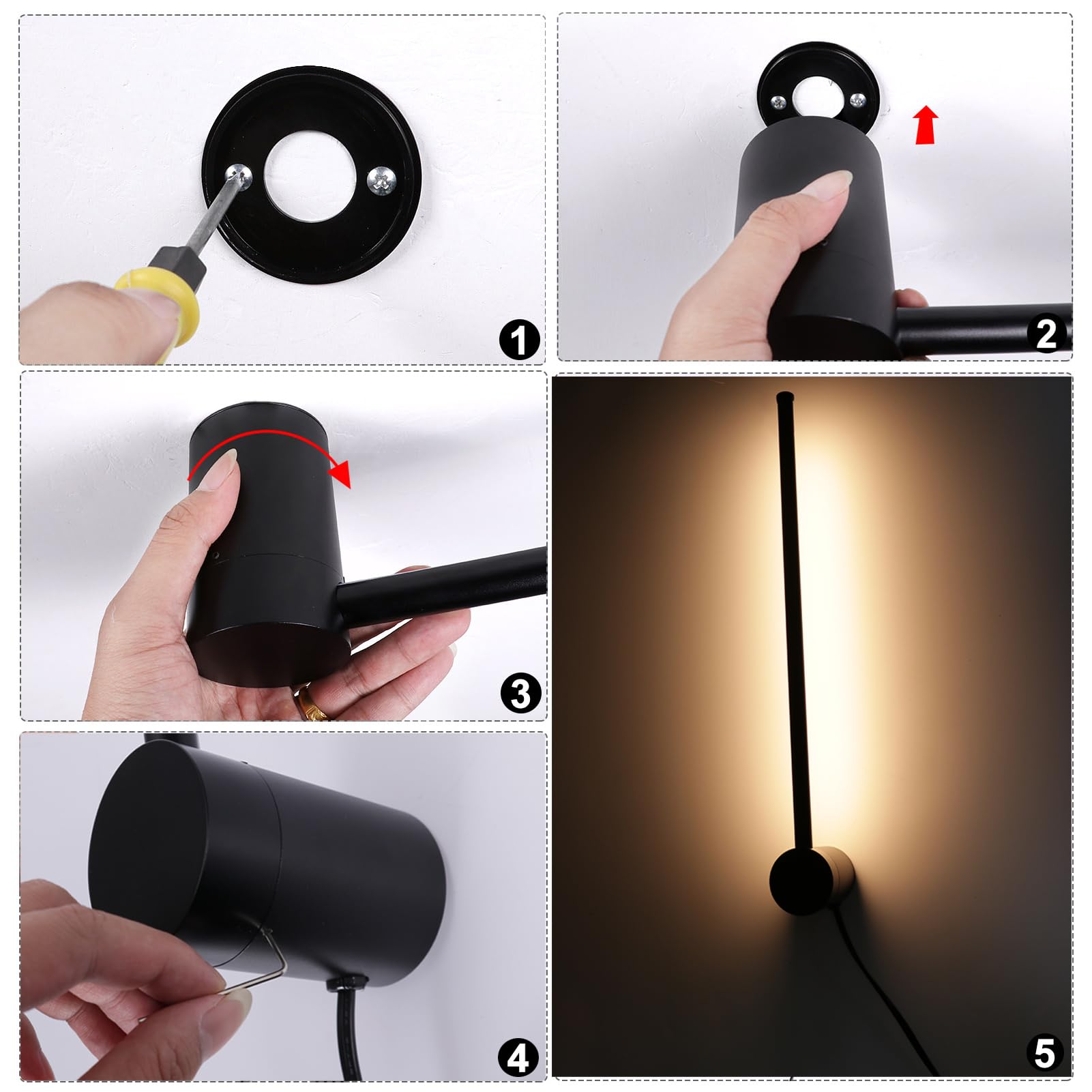 Kawell 12W Indoor LED Wall Light Bar Rotatable Plug in LED Wall Sconce with Switch Modern LED Wall Lamp Black for Bedroom Living Room Hallway Study, Warm White
