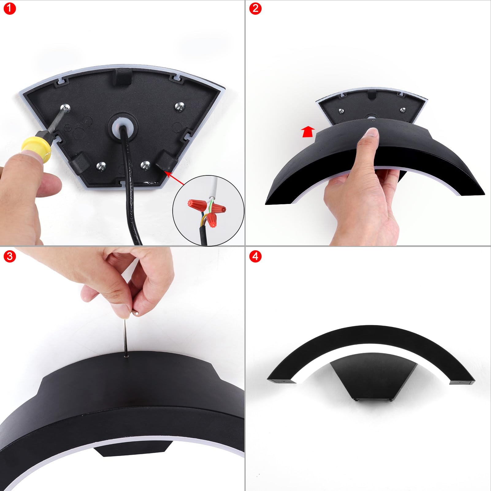 - Creative Curved Moon Design: The curved periphery is about 11.5 inch in circumference, and the overall construction is like a curved moon, emitting a soft 18W light at night; It is well sealed and weatherproof, and can be installed anywhere you like. (Please note that the base of this fixture does not fit into the standard US mounting slots)