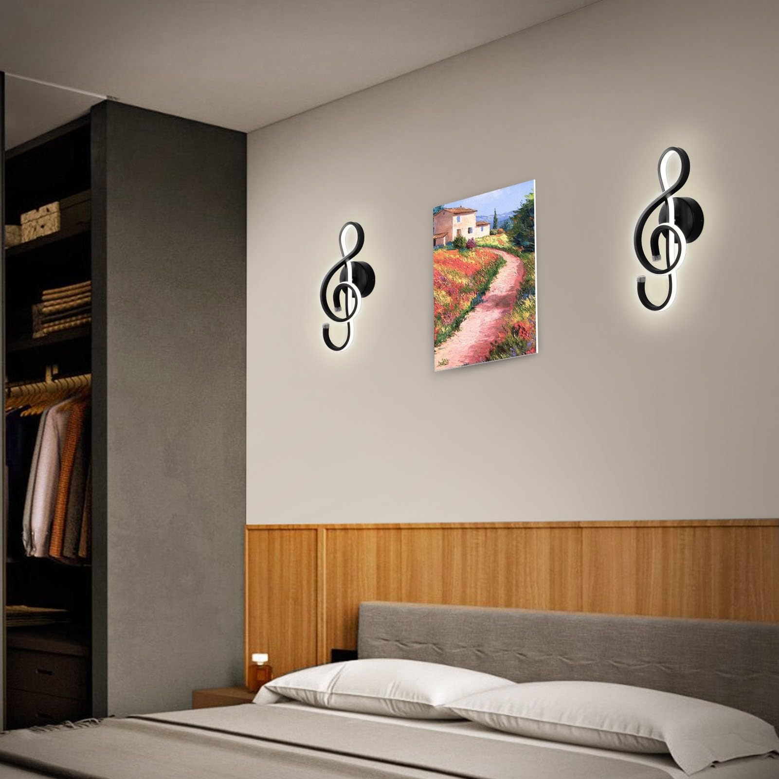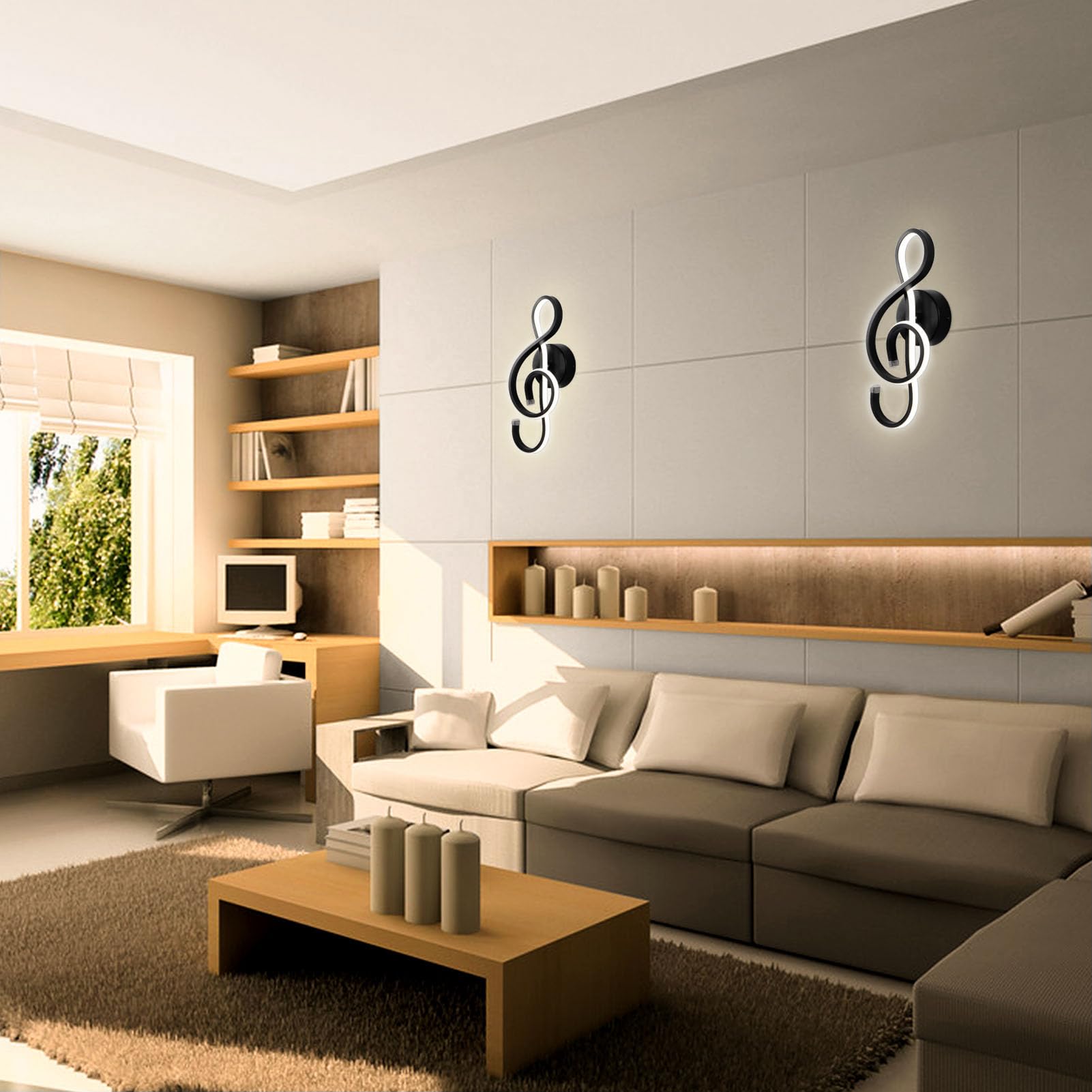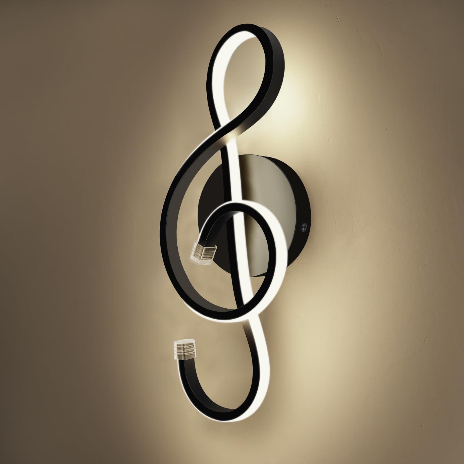 Kawell 22W Indoor LED Wall Light Modern LED Wall Sconce Light Creative LED Wall Lamp Music Symbol Art Decor for Bedroom Cafe Living Room Lounge Corridor Stairs, Black 4500K