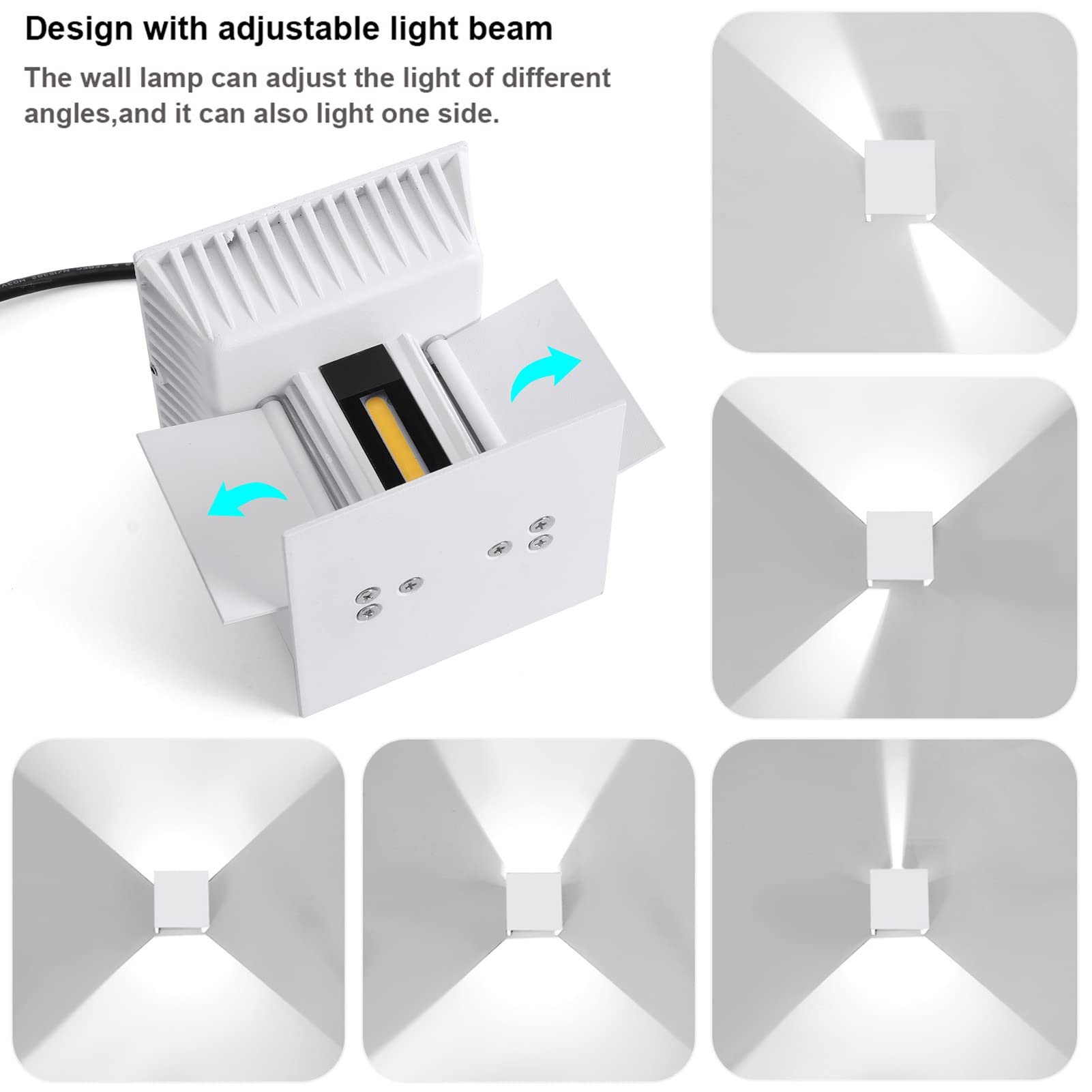Kawell 24W Modern Wall Sconce Light LED Wall Lamp Waterproof IP65 Aluminum LED Wall Light Adjustable Beam Angle Indoor Outdoor for Bathroom Living Room Bedroom Hallway Corridor Stairs, White 6000K