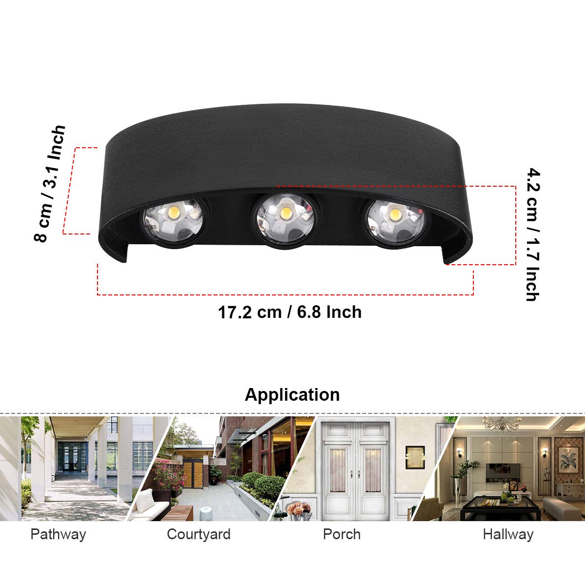 Kawell 6W Waterproof Modern Wall Sconces LED Wall Light Up Down Aluminum Wall Lamp LED Indoor Outdoor for Bathroom Bedroom Living Room Porch Stairs Hotels Garden Pathway, Black 3000K