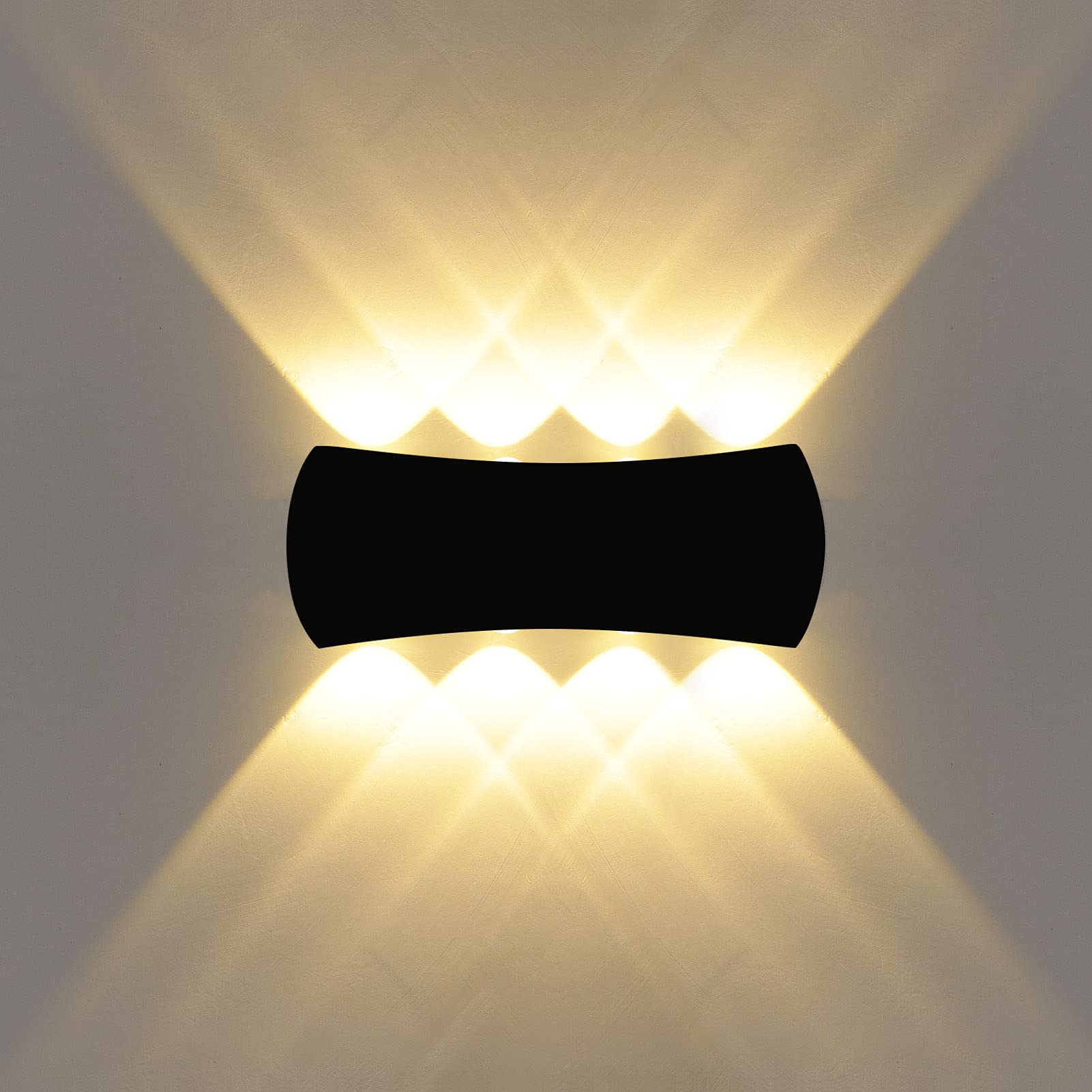 Kawell 8W Modern Wall Sconces LED Wall Light Up Down Indoor Outdoor Aluminum Wall Lamp LED Waterproof IP65 for Bedroom Living Room Bathroom Stairs Hallway Corridor Porch, Black 3000K