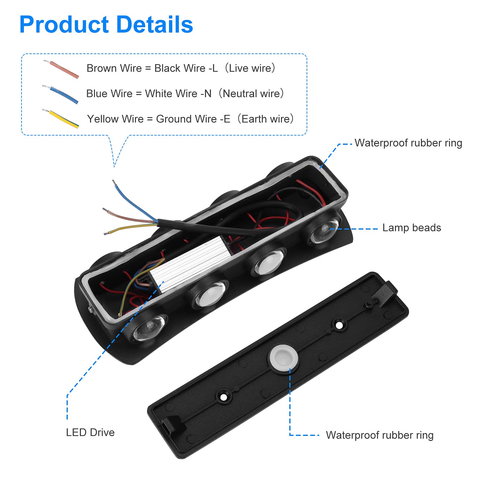 - Wall Light Parts: Total 8W, adopts 8x1W high quality LED chips. Light more uniform. Low energy consumption, up to 50,000h of life. Built-in intelligent IC chip, 85-265V wide voltage design, suits for different voltage environment