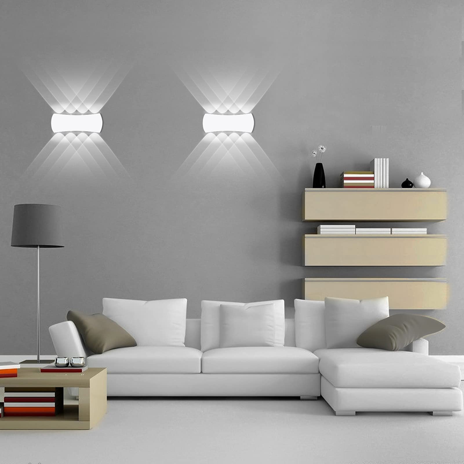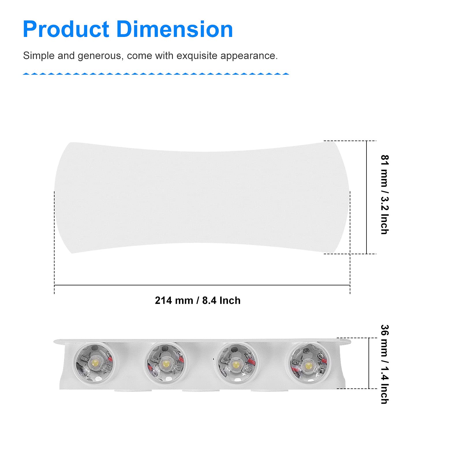 - Modern Simplicity Wall Light: 8pcs evenly spaced LED lamp beads can make the wall light produce a superposition light effect. 8.4*3.2*1.4Inch(21.4*8.1*3.6cm). Wall mounted, easy to install