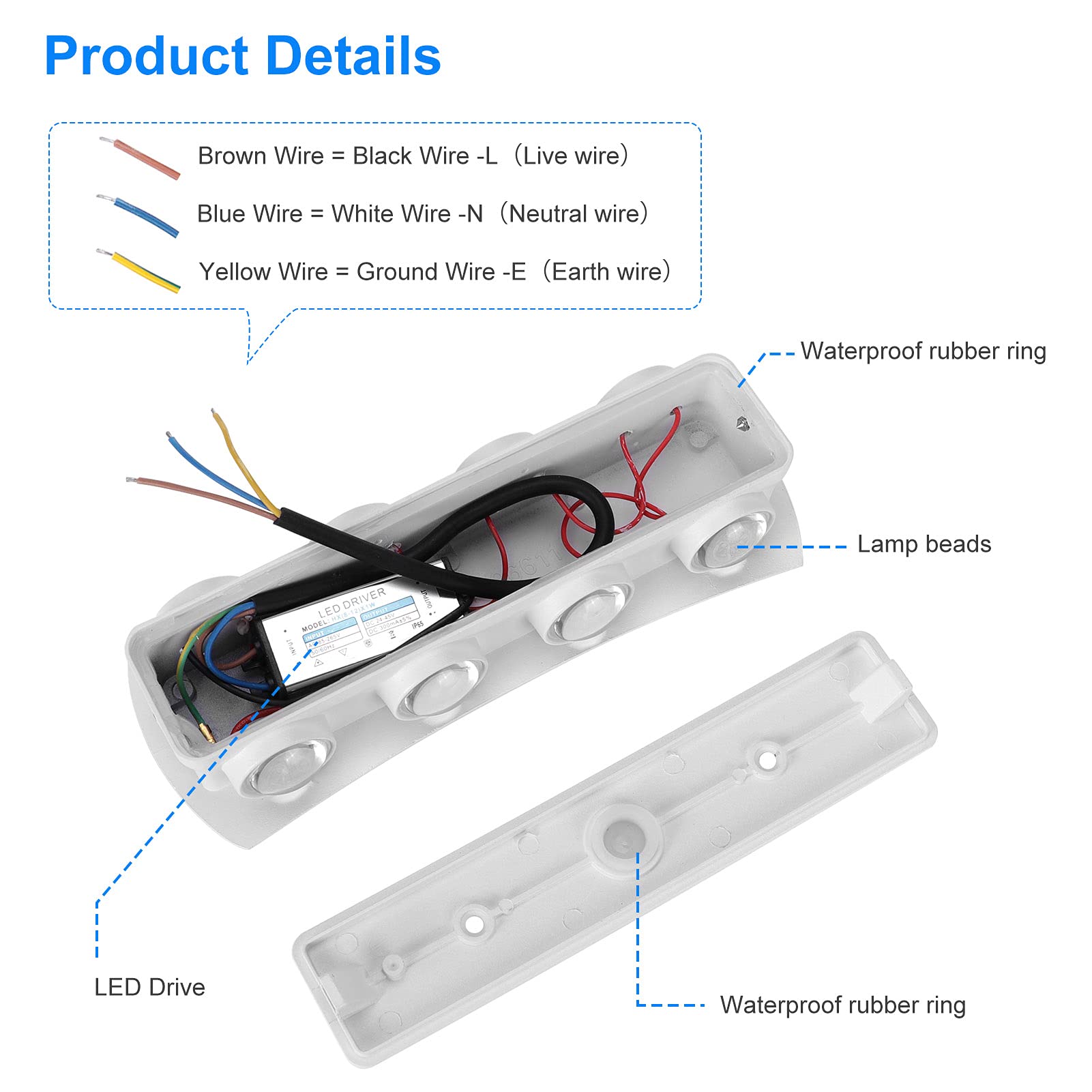 - Wall Light Parts: Total 8W, adopts 8x1W LED chips. Light more uniform. Low energy consumption, up to 50,000h of life. Built-in intelligent IC chip, 85-265V wide voltage design, suits for different voltage environment