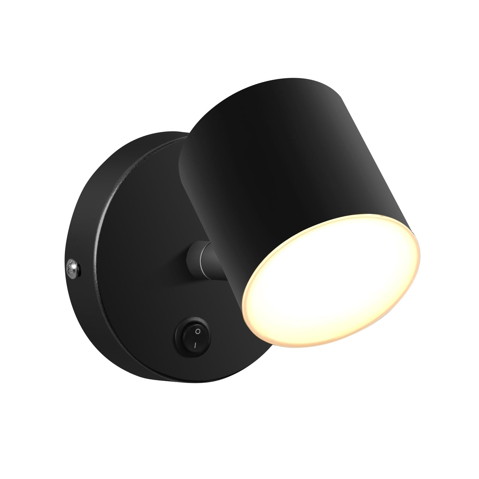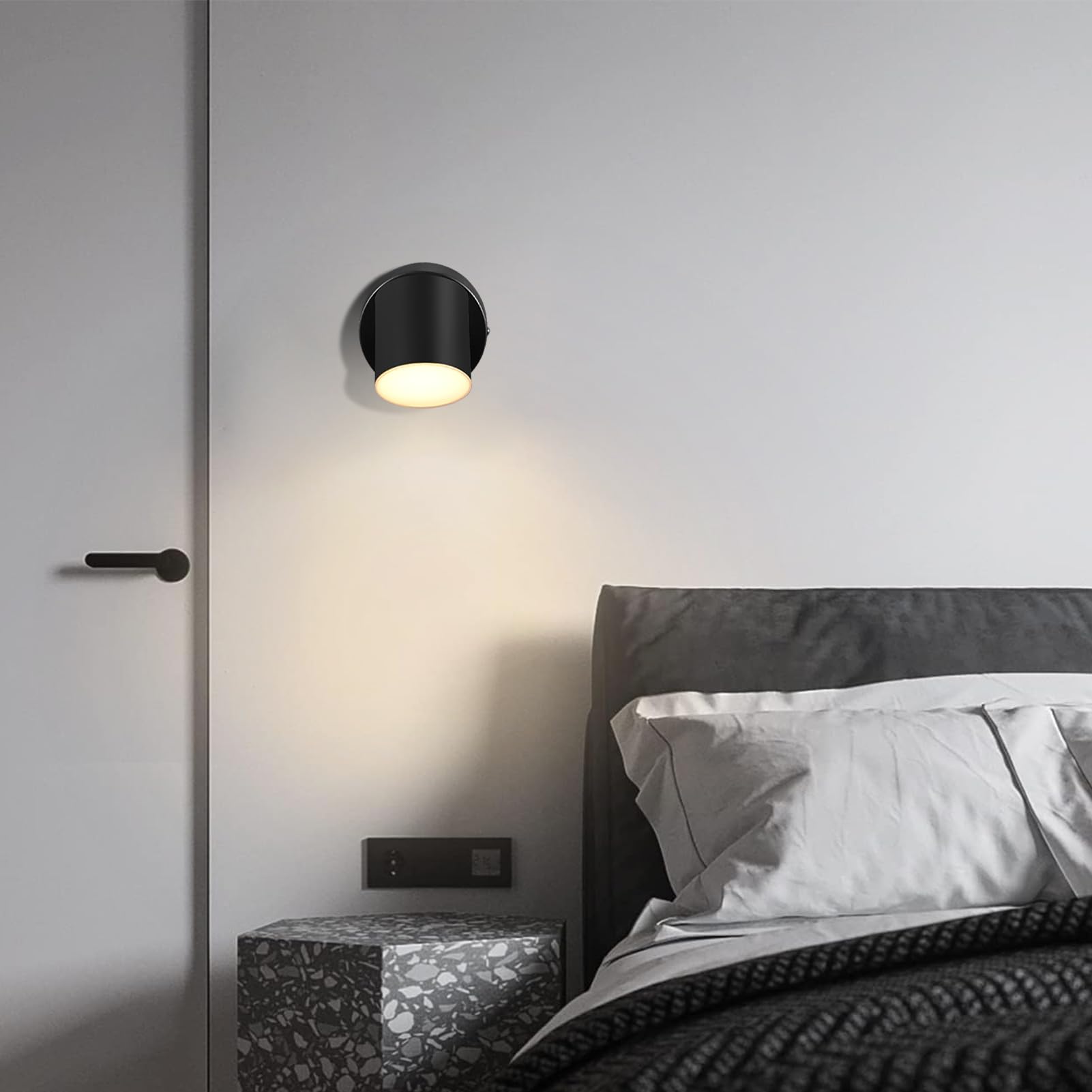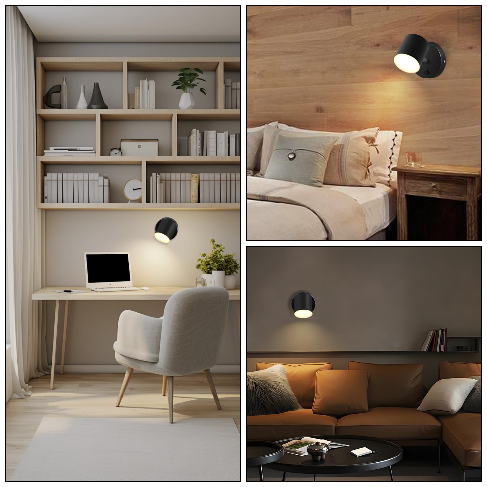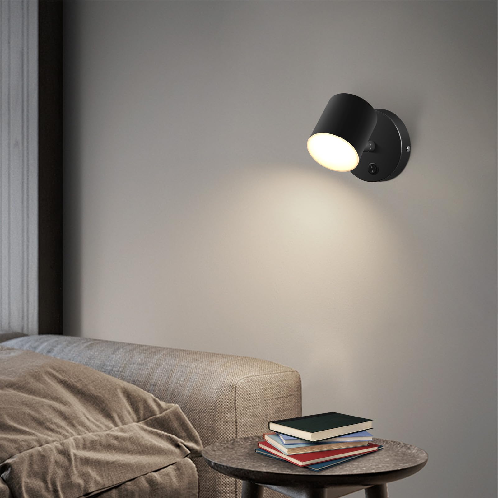 Kawell Indoor LED Wall Light with Switch Modern LED Wall Sconce Rotatable Hardwired LED Wall Lamp Nordic Style for Bedside Study Child Room, Black(3000K)