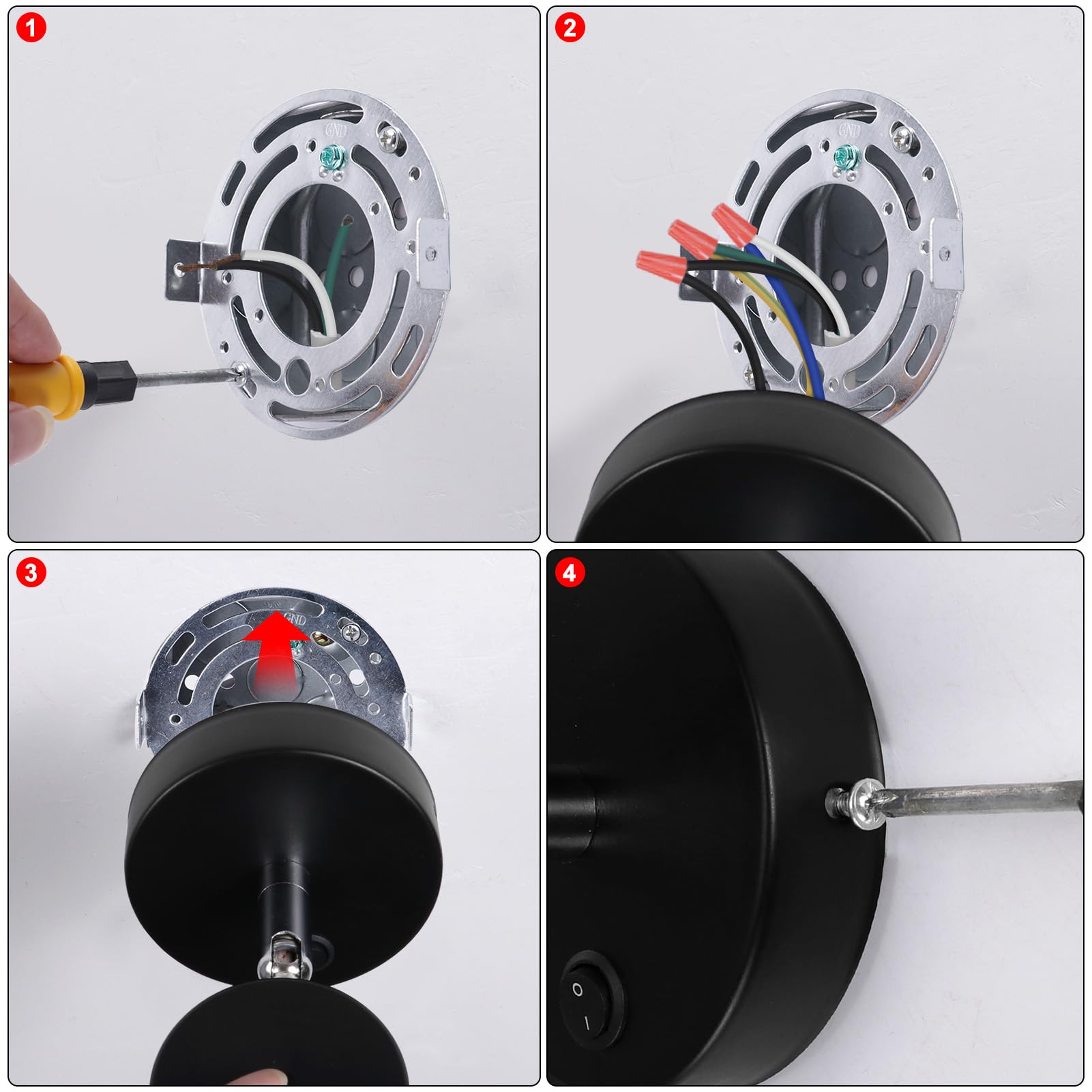- Simple Installation: Hardwired Installation, comes with American standard round bracket , the fixture chassis is 4.3inches in diameter, which can completely cover the American electrical box. Supports mounting on sloped ceilings