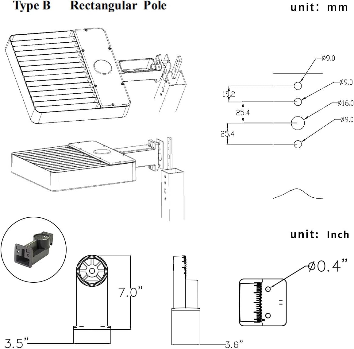 Designed specifically for square pole installations, the KAWELL 100W LED Parking Lot Light offers exceptional flexibility with 6 different mounting configurations. Delivering 13,000 lumens of bright, energy-efficient illumination, this commercial-grade shoebox light is perfect for parking lots, streets, and outdoor areas that require square pole compatibility. Available with optional photocell for automatic dusk-to-dawn operation.