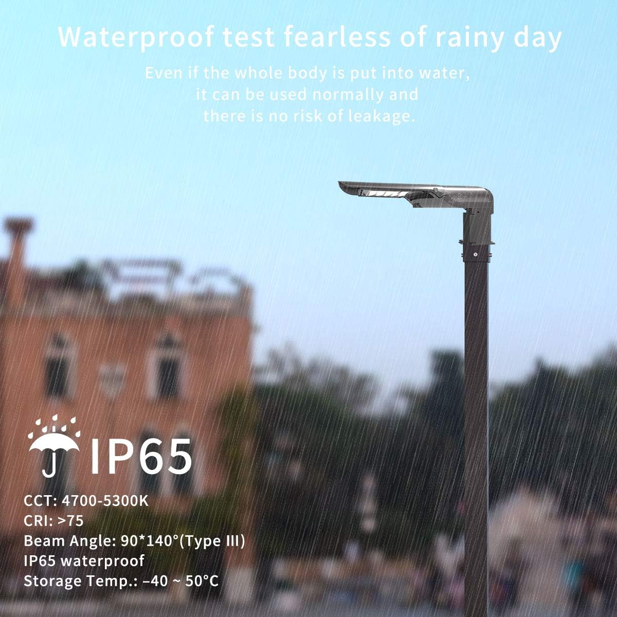 - Type III Distribution: 90° x 140° beam angle provides optimal light distribution for parking areas