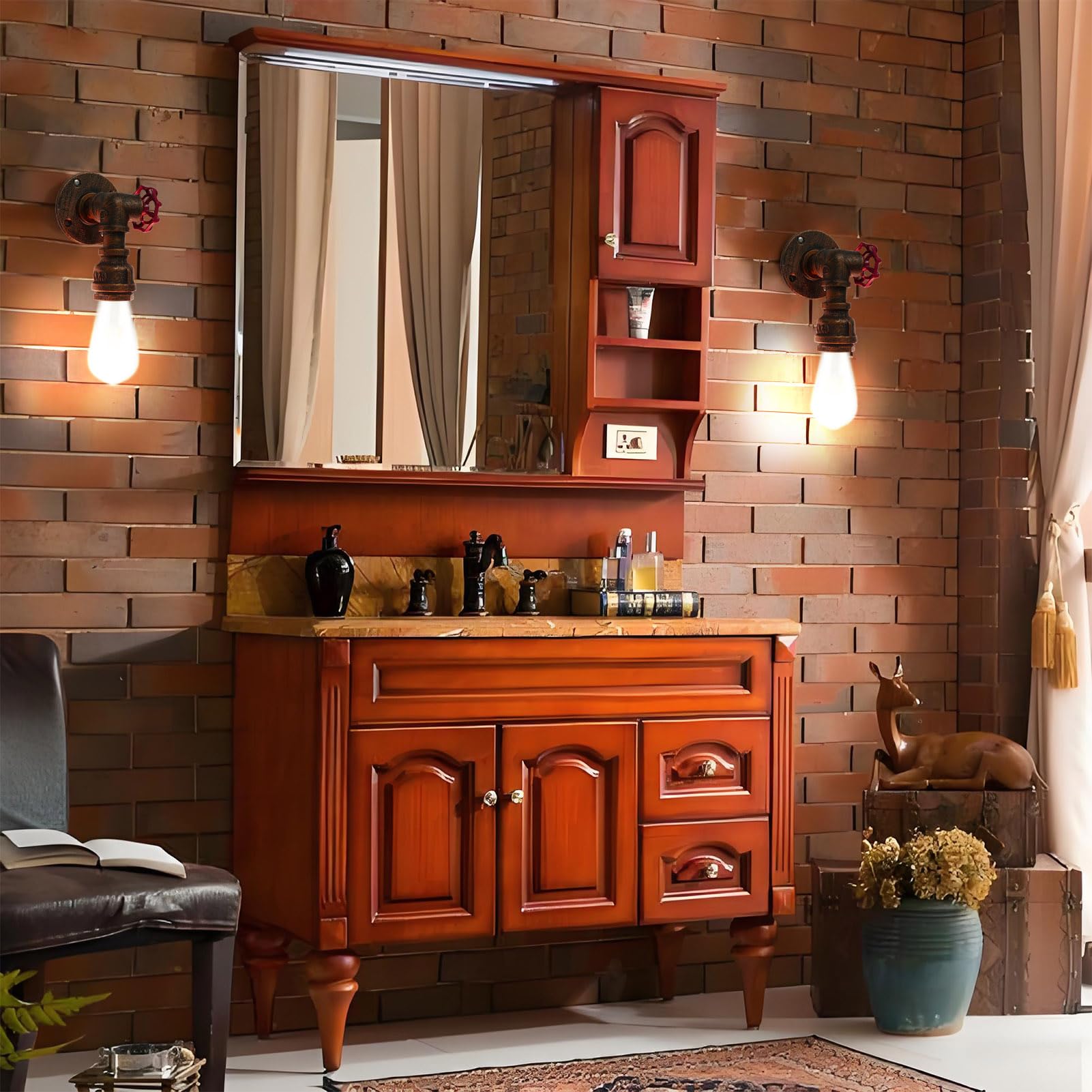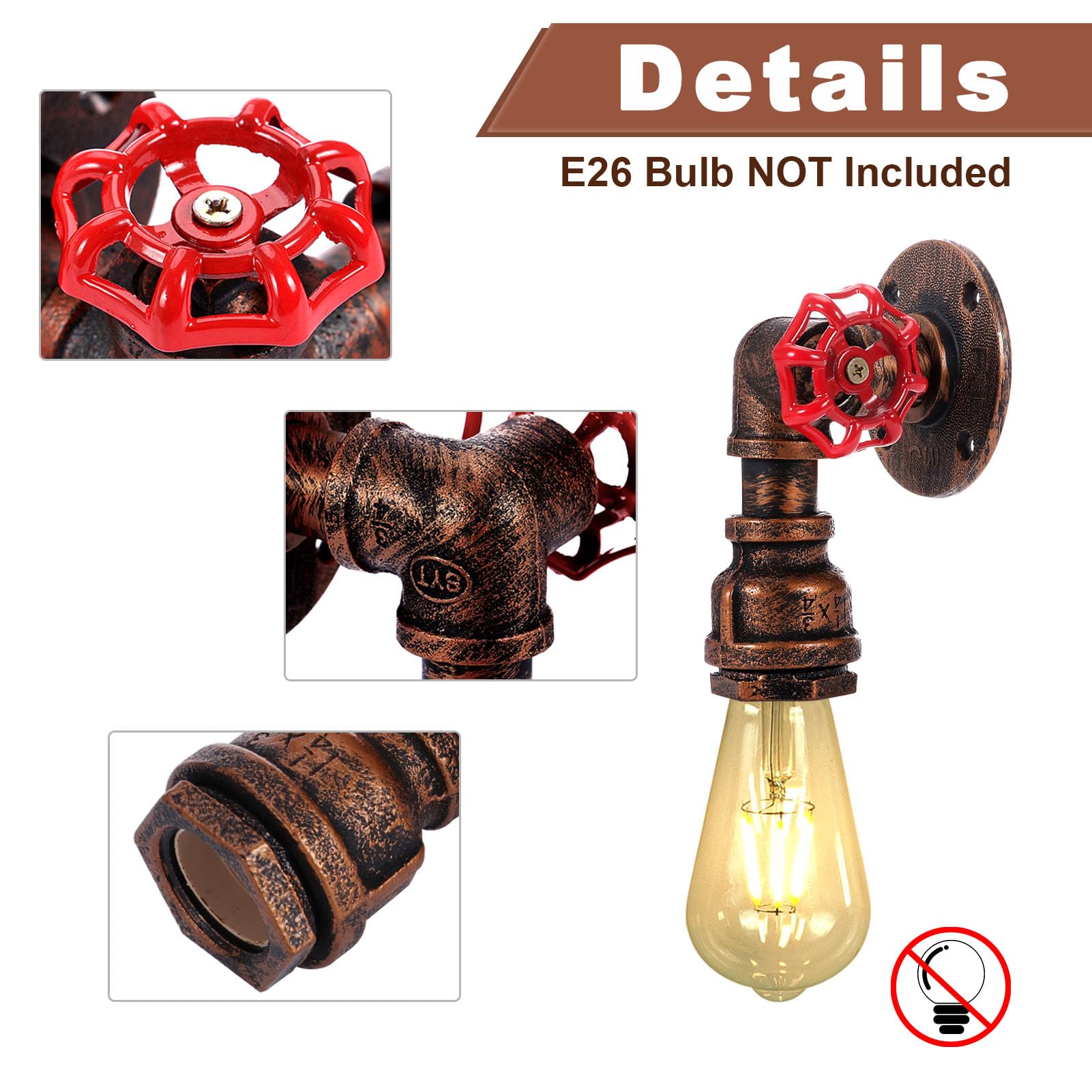 - Vintage Water Pipe Design: Water pipe wall sconce with valves, with a very industrial steampunk character; The overall construction is on the industrial retro type; Not only can be used as a lighting fixture, but also a decorative piece to create a cozy and artistic atmosphere