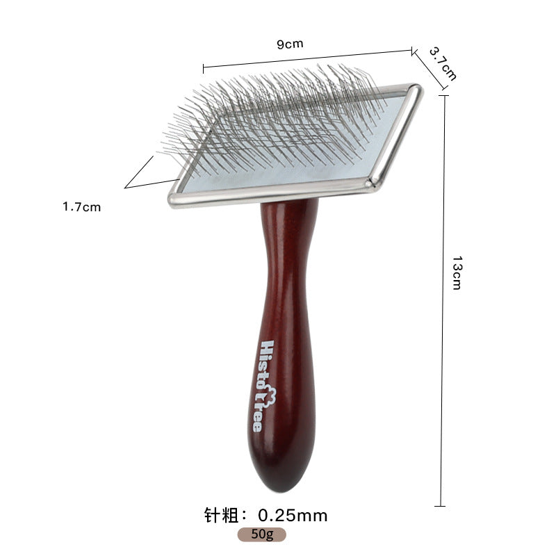 Elevate your pet's grooming routine with this premium solid wood handle comb. Crafted with a warm red-brown wooden grip and precision stainless steel pins, this comb offers professional-level grooming comfort for both you and your pet. Choose from three comb styles and multiple pin lengths to match your pet's coat type perfectly.